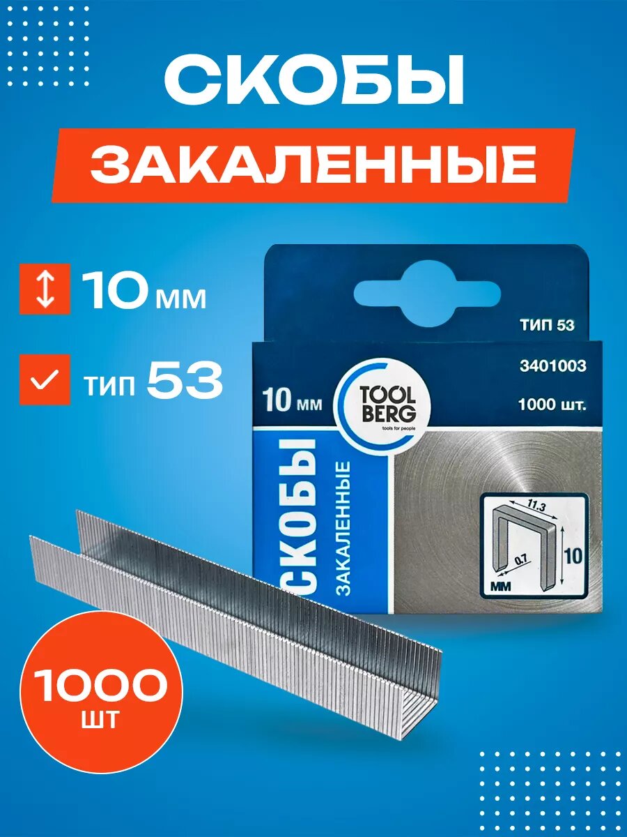 Скобы Toolberg, тип 53, ширина 11,3 мм, толщина 0,7 мм, длина 10,0 мм, упаковка 1000шт. информация: