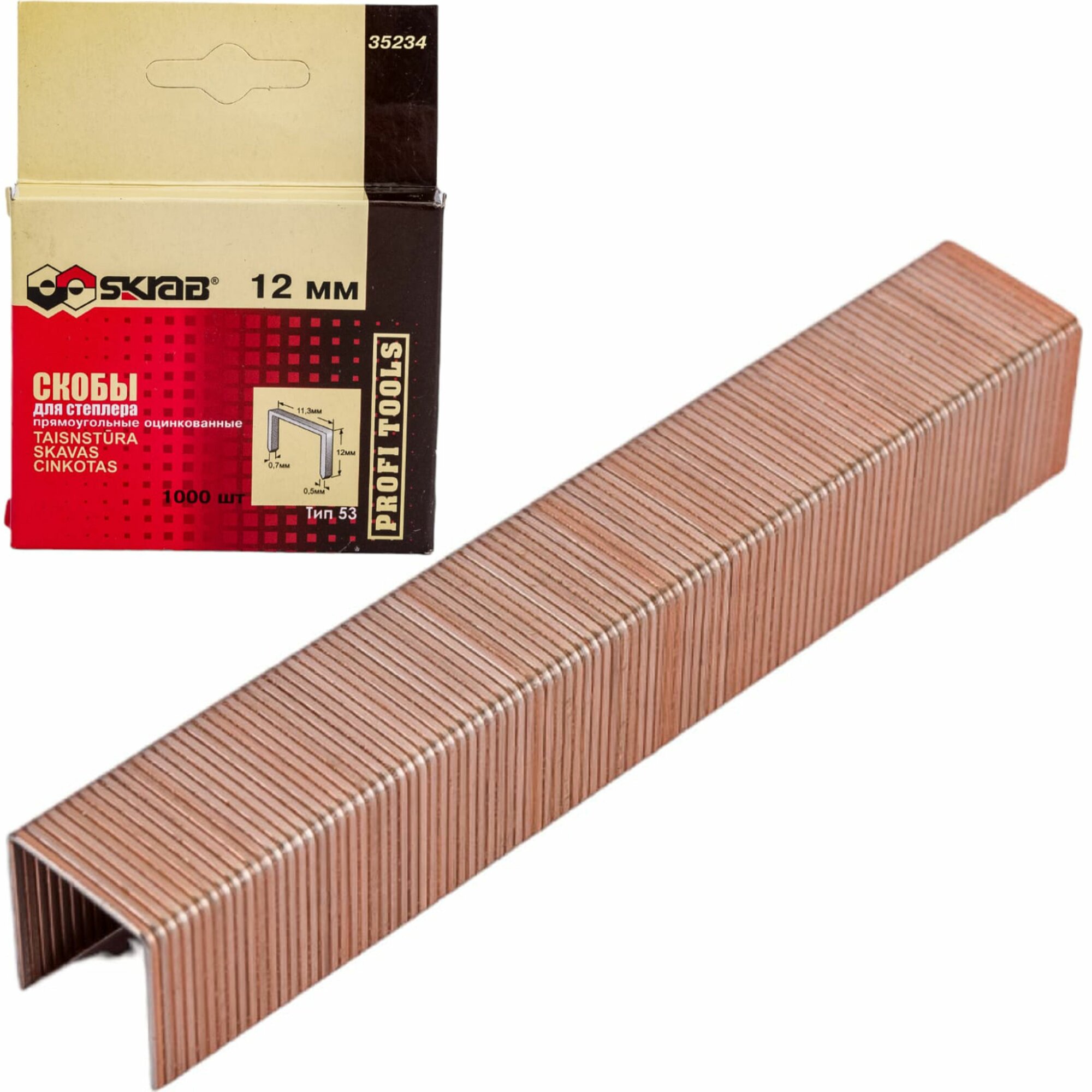 Скобы Skrab 35234 для степлера прямоугольные оцинкованные 12 мм, тип 53 / 1000 шт. информация: