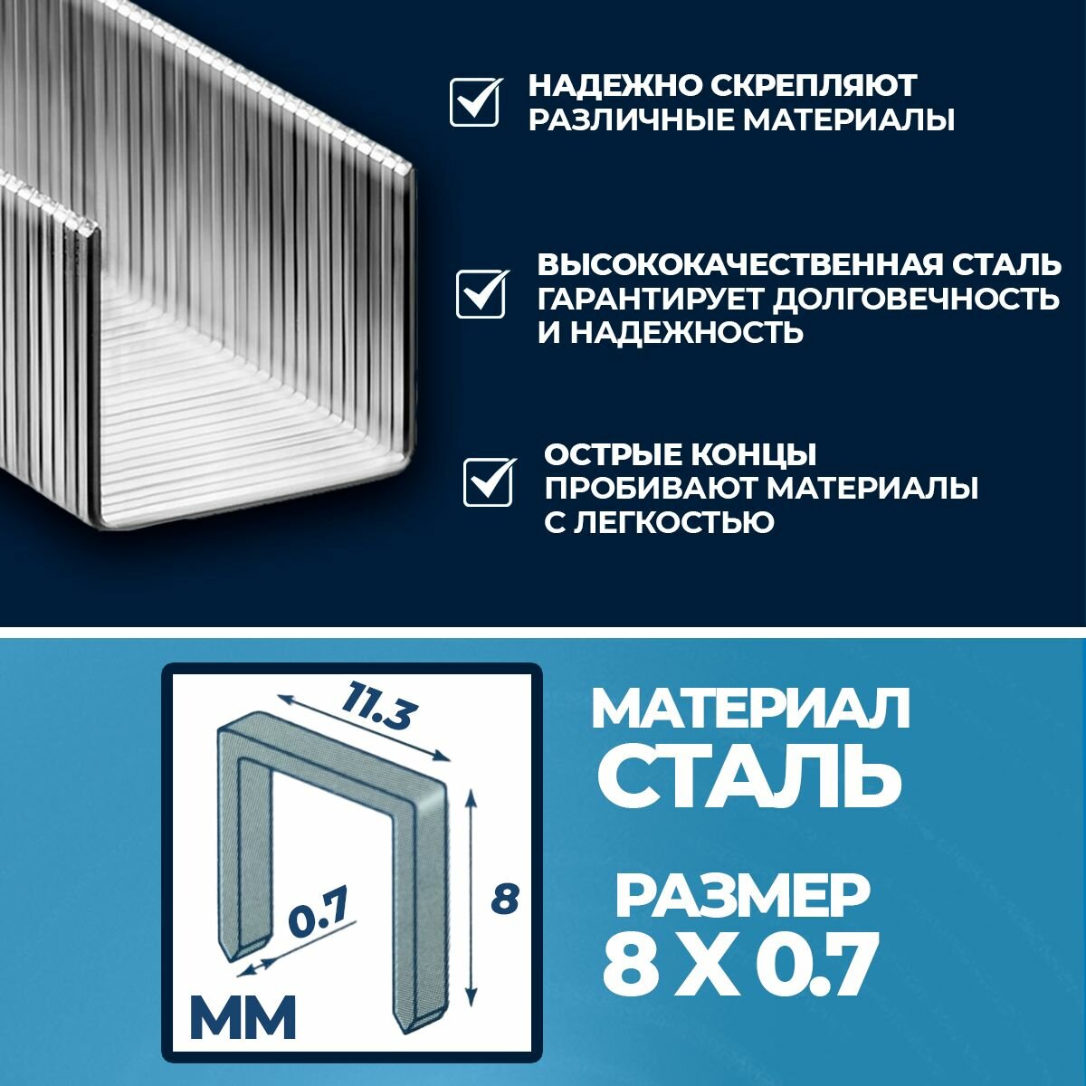 Скобы мебельные закаленные для степлера строительного, тип 53, 8 мм, Toolberg, уп.1000 шт. (Лакра) информация: