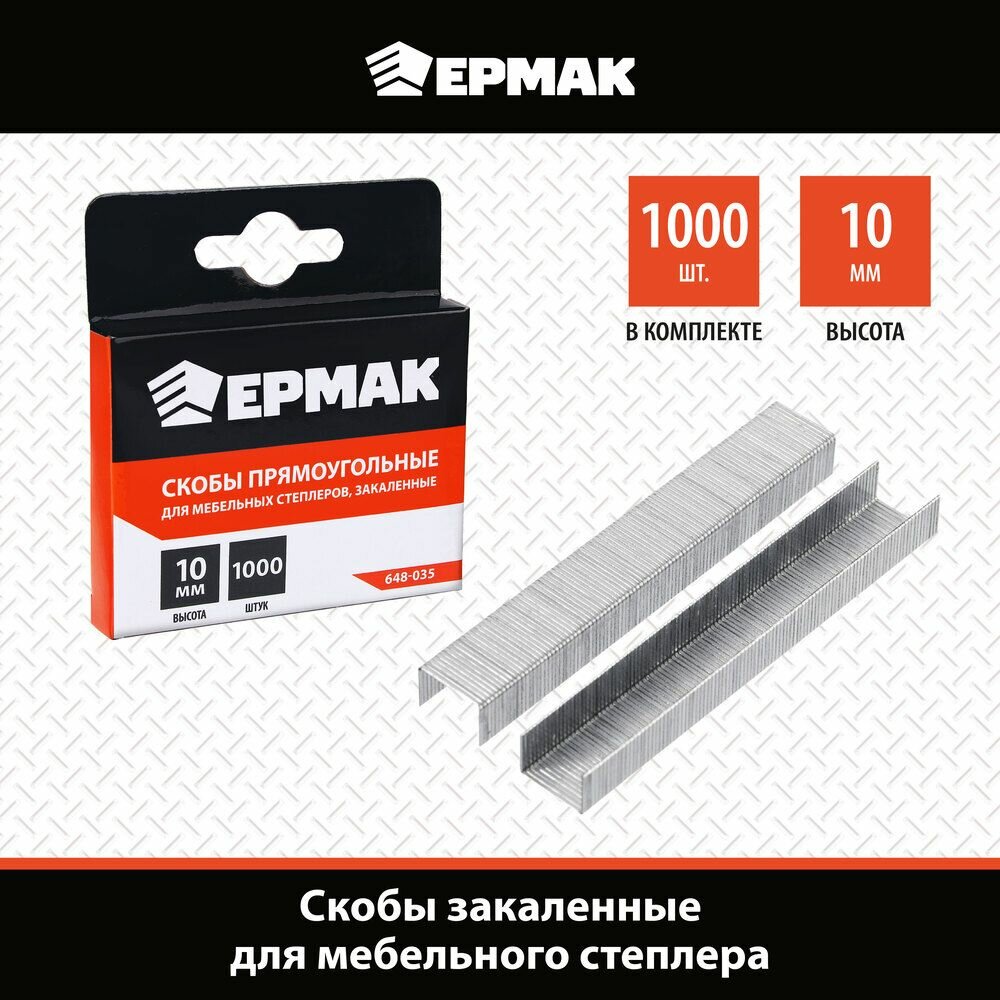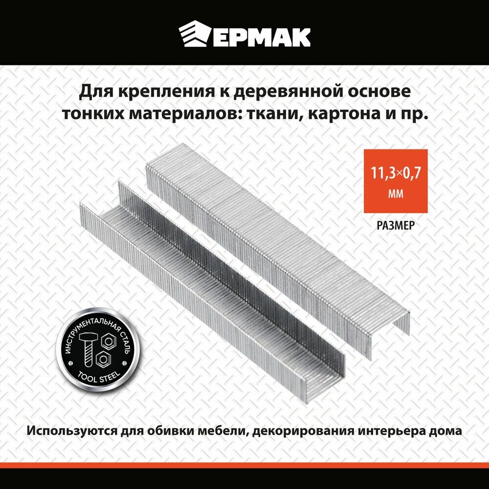Скоба закаленная 10мм (11, 3х0, 7мм) для мебельного степлера 1000шт. Ермак информация:
