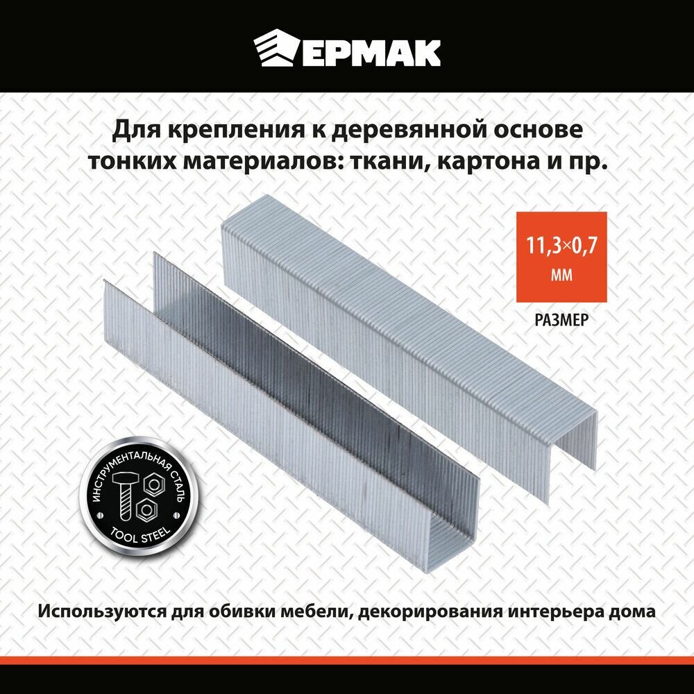 Скоба закаленная 14мм (11,3х0,7мм), для мебельного степлера 1000шт ермак информация: