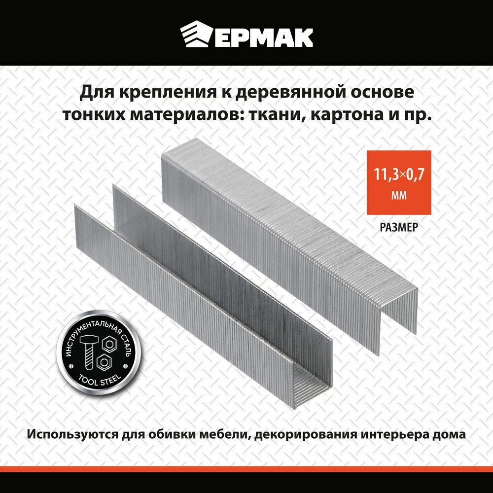 Скоба закаленная 12 мм (11,3х0,7мм) для мебельного степлера 1000шт. Ермак информация: