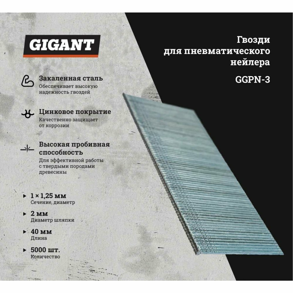 Гвозди для пневматического нейлера Gigant 40х1,25х1 мм 5000 шт. информация: