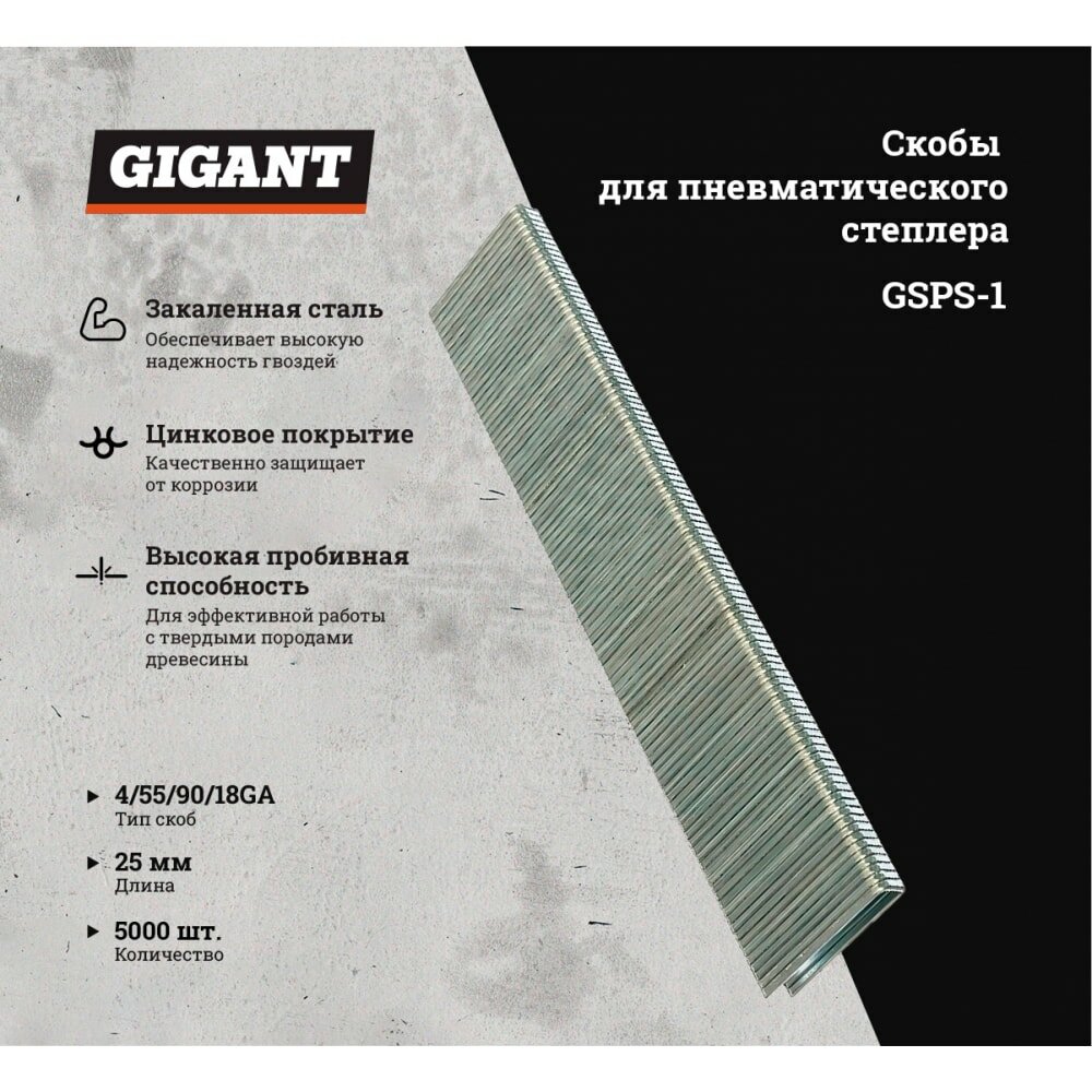 Скобы для пневматического степлера Gigant 18GA 25 мм 5000 шт. информация: