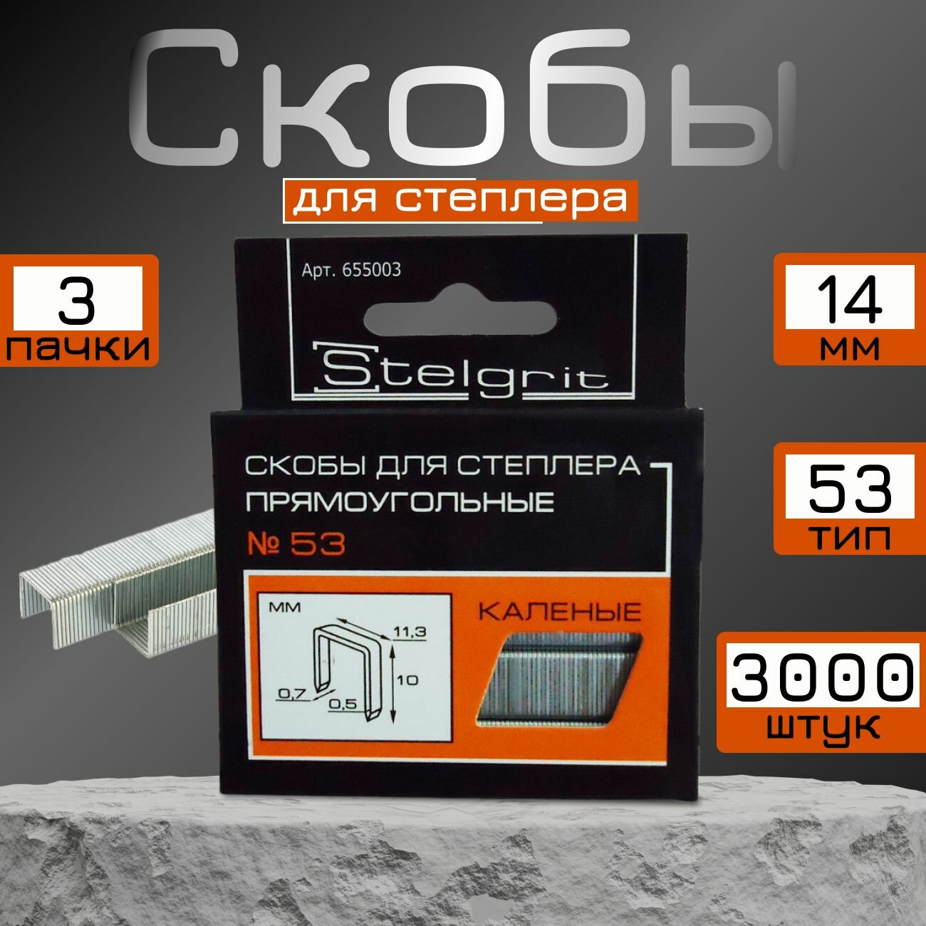 Скобы для строительного степлера прямоугольные №53х 14 Stelgrit, 3000 шт. информация: