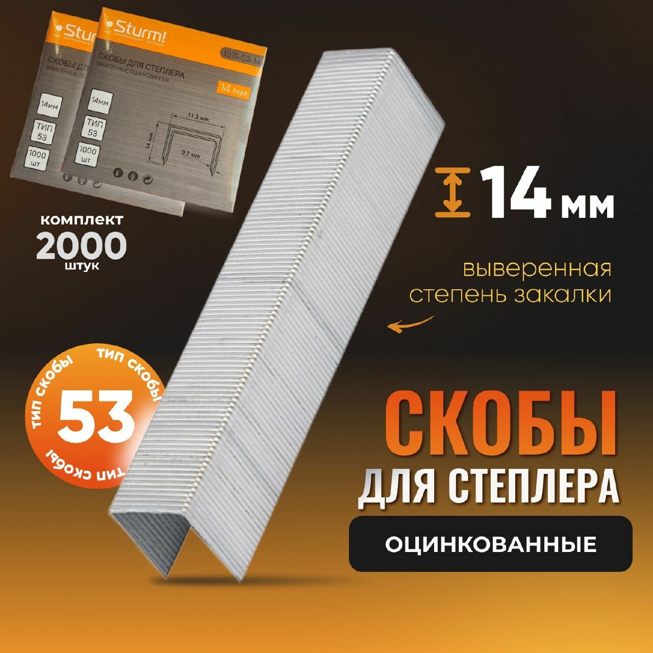Скобы, 14 мм, для мебельного степлера, тип 53, 2000 шт Sturm! ( 2 упак. по 1000 шт) информация: