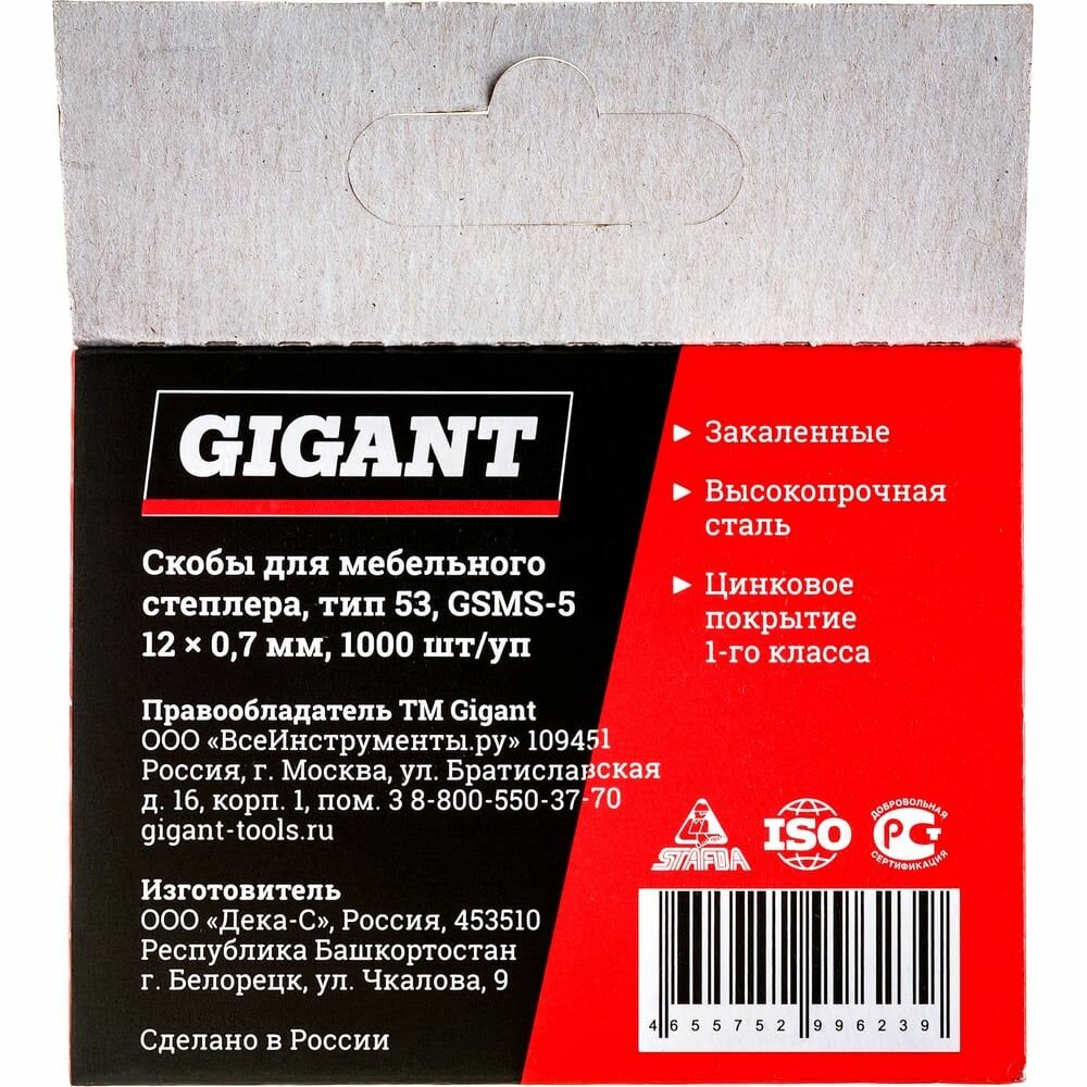10 цен на Скобы для мебельного степлера Gigant тип 53, 12x0,7 мм, 1000 шт. GSMS-5