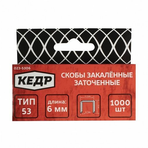 Скобы 6 мм тип 53 3000 шт закаленные для мебельного степлера Кедр информация: