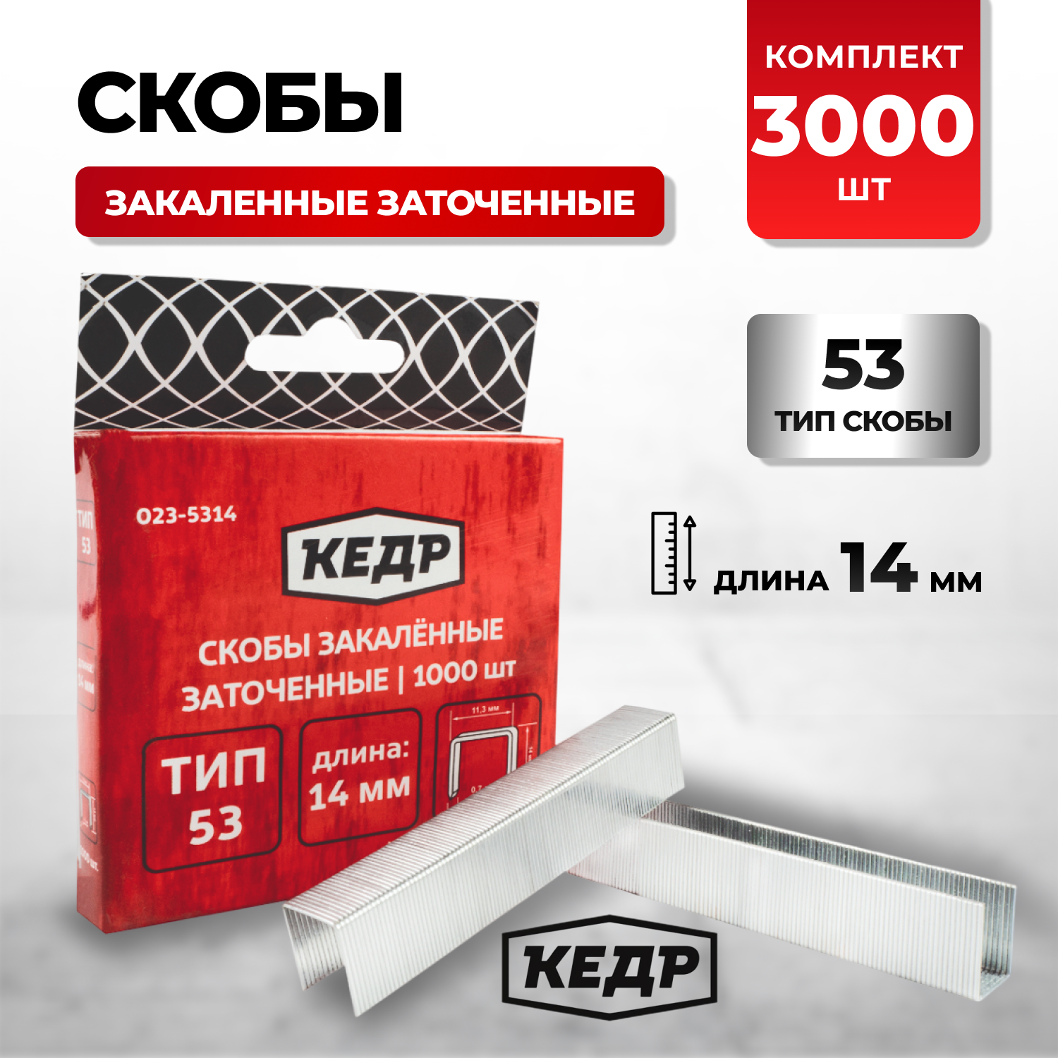 Скобы 14 мм тип 53 3000 шт закаленные для мебельного степлера Кедр информация: