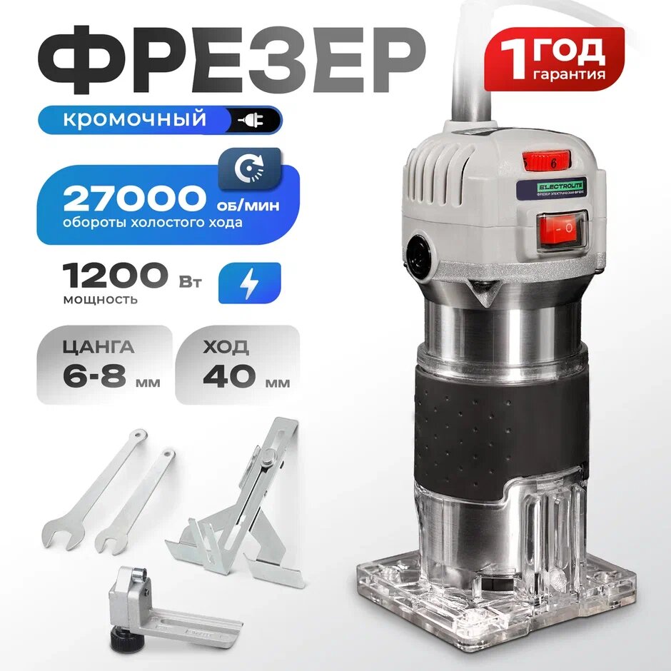 Фрезер кромочный Electrolite ФР-1200Е ( 1200Вт, 4000-27000Об/Мин, 6-8 диаметр цанги, 1,9кг ) информация: