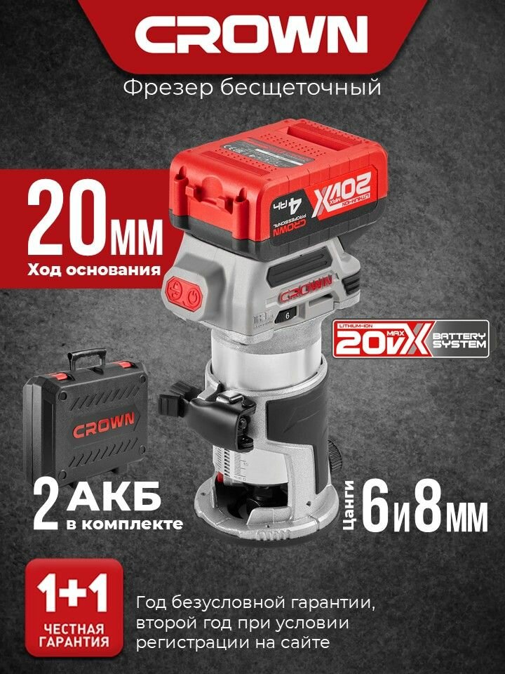Фрезер по дереву CROWN CT26010HX-4 BMC; B3+; 2 аккумулятора, зарядка информация: