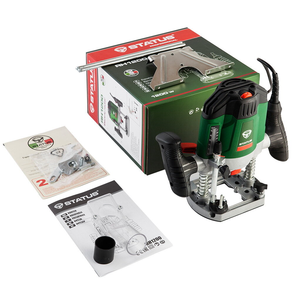 Фрезер STATUS RH1200, 1.2кВт 9000-30000об/мин глуб.60мм компл: цанга 6мм парал. упор 4кг информация: