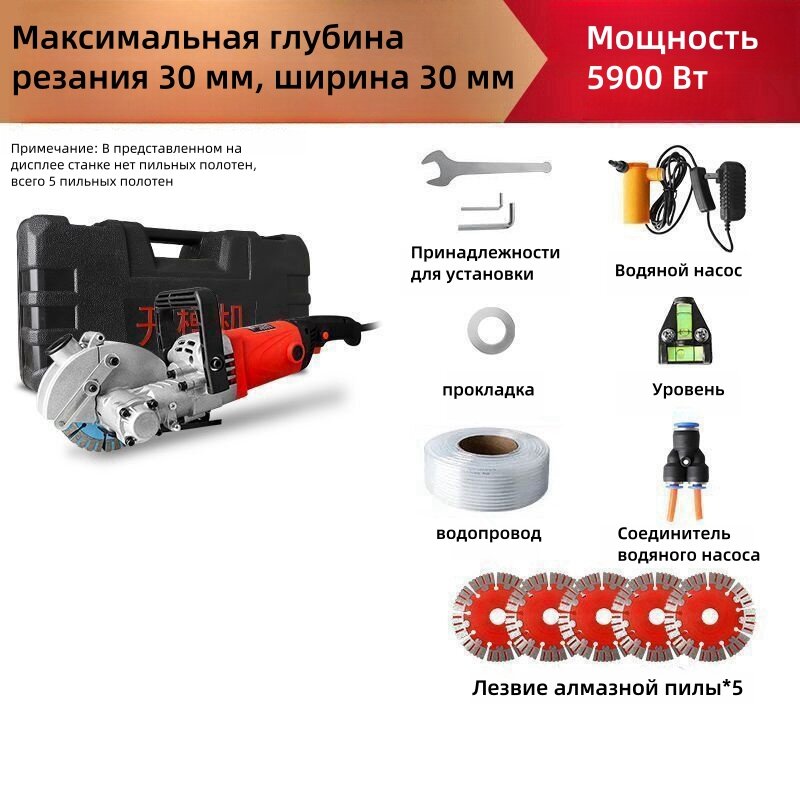 10 цен на Бороздодел, Используется для прокладки водопроводных труб и проводов, мощность 5900 Вт, с 5 пильными дисками