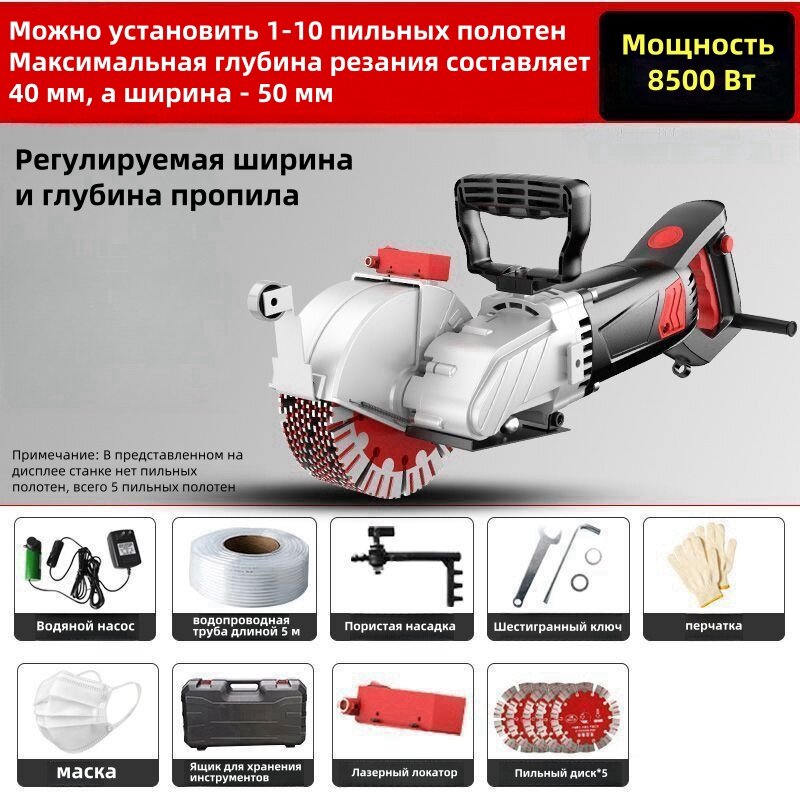 10 цен на Бороздодел, Используется для прокладки водопроводных труб и проводов, мощность 8500 Вт, с 5 пильными дисками