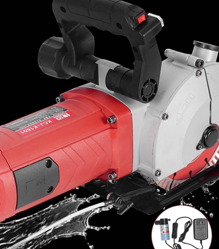 Штроборез безпыльный в пластиковом кейсе с помпой для воды и набором дисков (5 штук), защита УЗО, маска + перчатки информация: