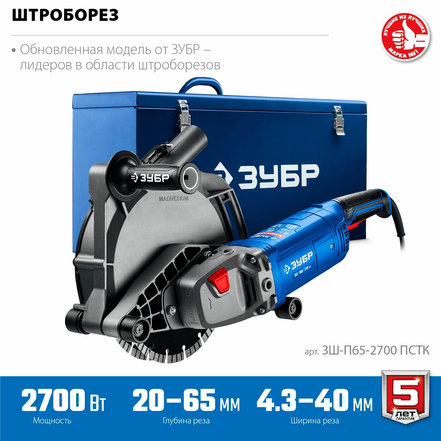 Штроборез (бороздодел) ЗУБР d 230 мм, 2700 Вт, 65 мм, метал. ящик, Профессионал информация: