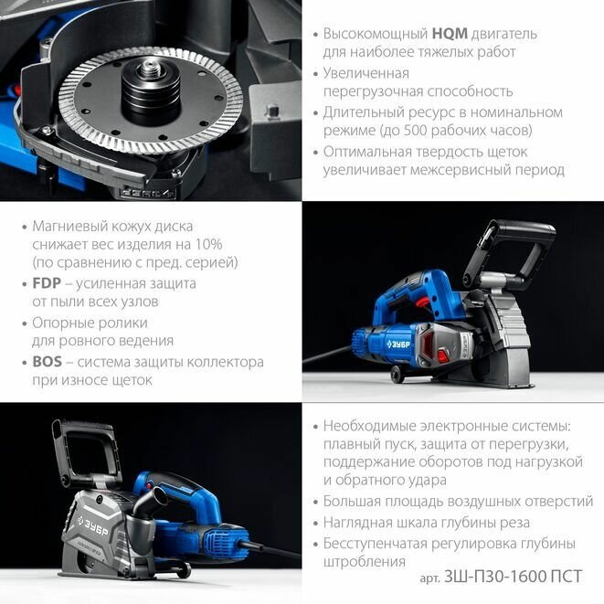 Штроборез электрический (бороздодел) ЗУБР 16000W, диаметр 125mm, глубина 30mm информация: