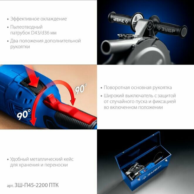 Штроборез ЗУБР ЗШ-П45-2200 ПТК, d 180 мм, 2200 Вт, 45 мм, (бороздодел), метал. ящик, Профессионал (ЗШ-П45-2200 ПТК) информация:
