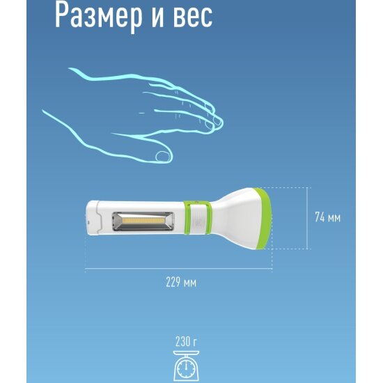 Фонарь со светильником аккумуляторный Космос Ac7035W средний, Белый/зеленый
