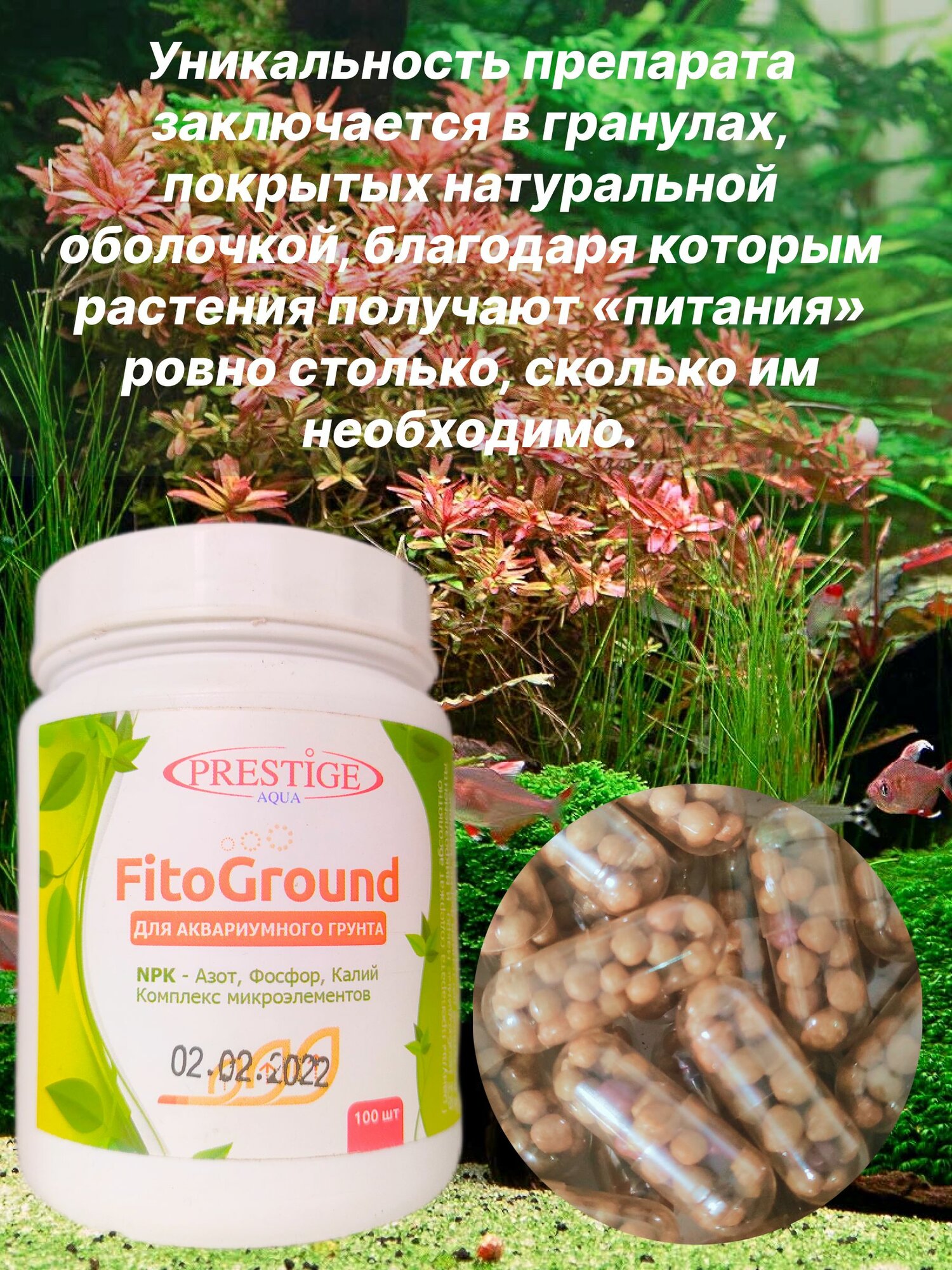 Удобрение Prestige Aqua Fito Ground для аквариумных растений, грунтовая подкормка, 100 капсул. 125гр. информация: