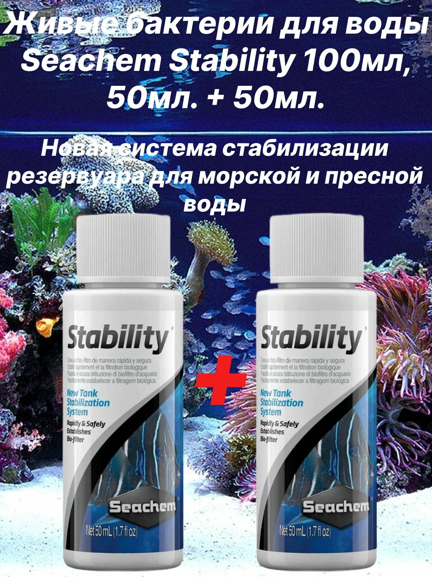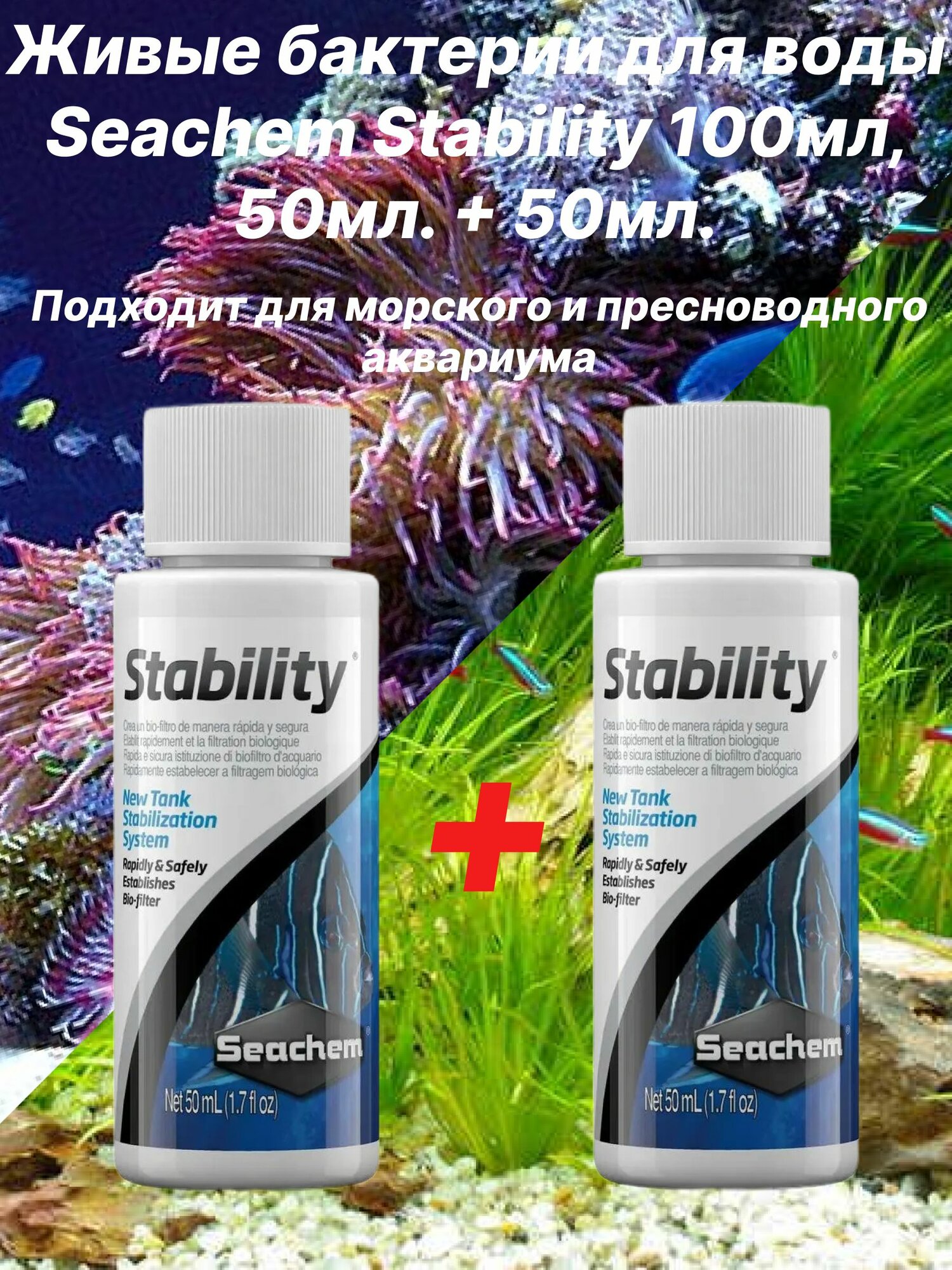 10 цен на Бактерии Seachem Stability 100 мл на 1600 л. 50мл + 50мл. - живые бактерии для воды, расход 5мл на 80л для морской и пресной воды