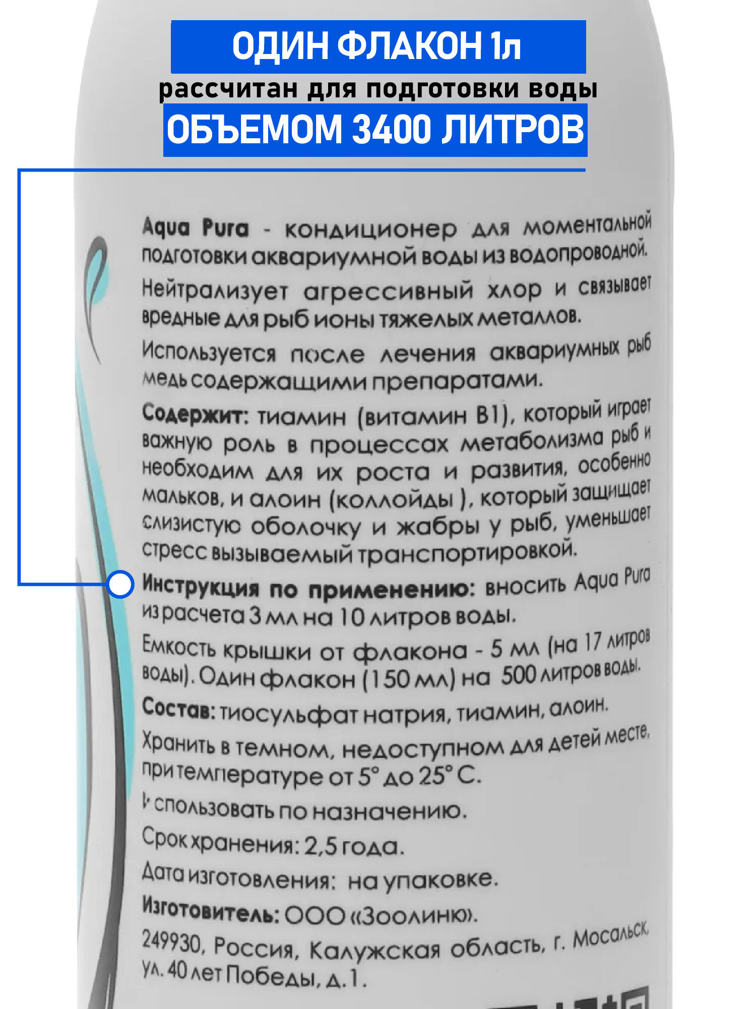 Кондиционер для моментального приготовления воды в аквариуме Zoolink AQUA PURA 1 л информация: