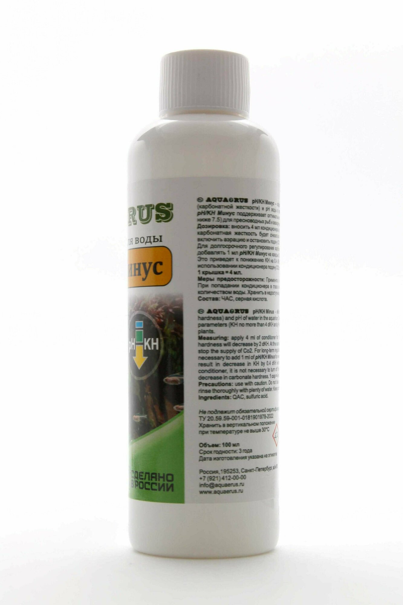 Удобрение для аквариума AQUAERUS pH/KH минус, средство для снижения жесткости (КН) и рН воды в аквариуме 100 мл информация:
