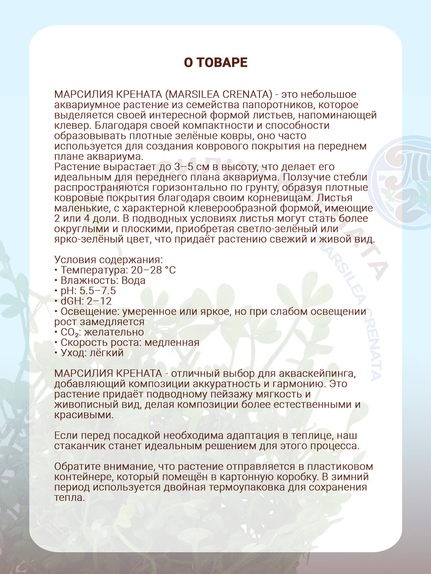 Отзывы на Марсилия крената (MARSILEA CRENATA) меристема живые растения in-vitro для аквариума