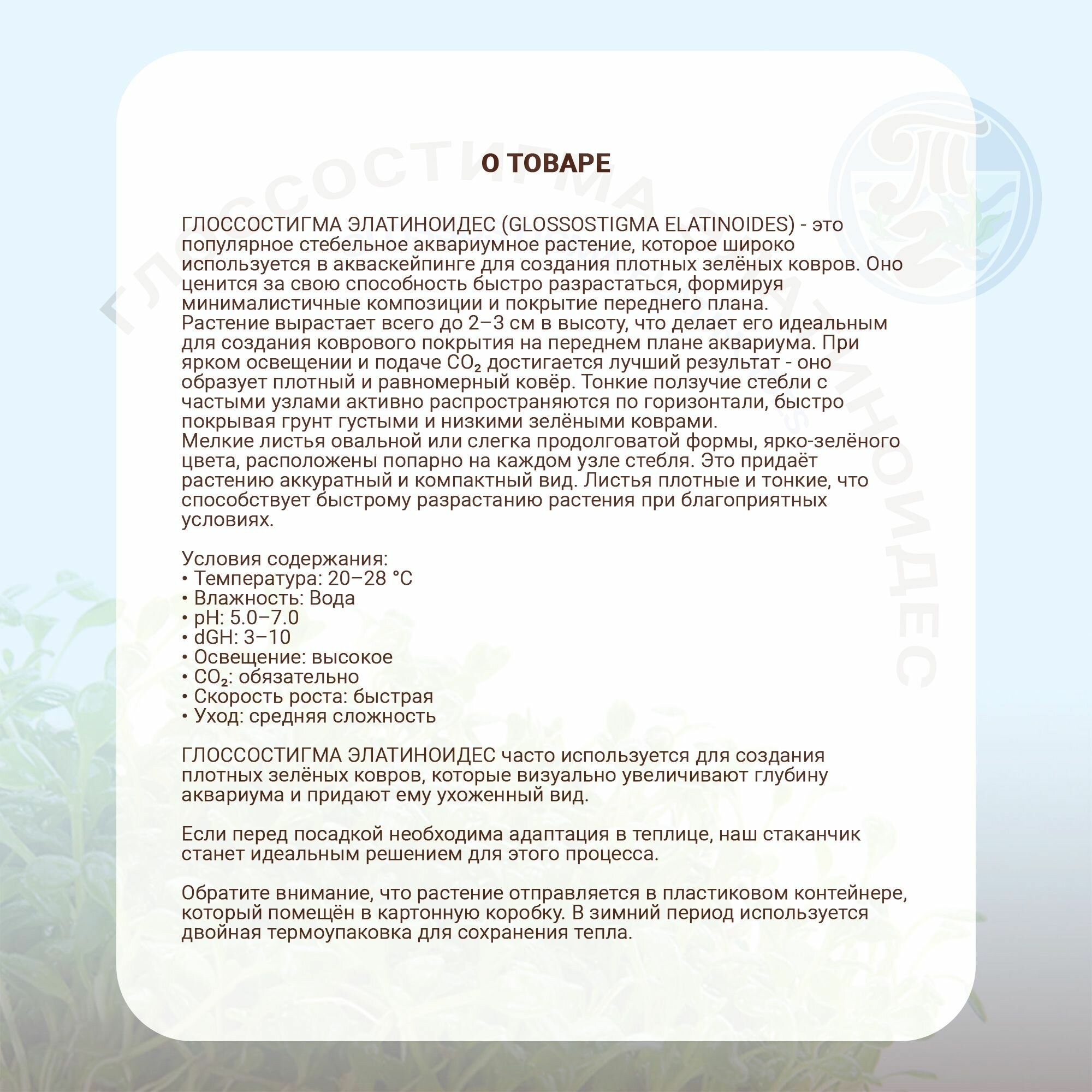 Глоссостигма элатиноидес (GLOSSOSTIGMA ELATINOIDES) меристема живые растения in-vitro для аквариума информация: