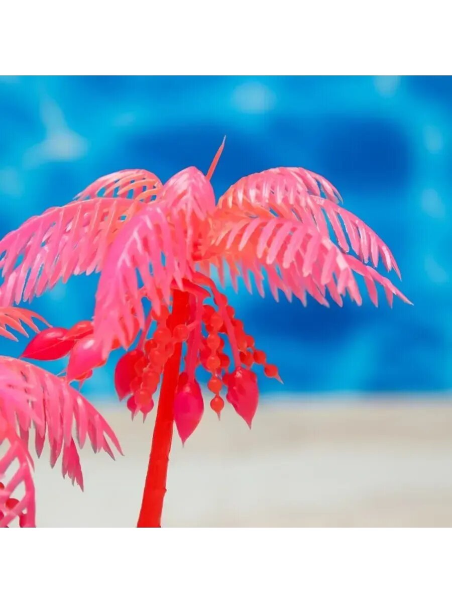 Растение искусственное аквариумное "Пальма", светящееся, 18 см, красное