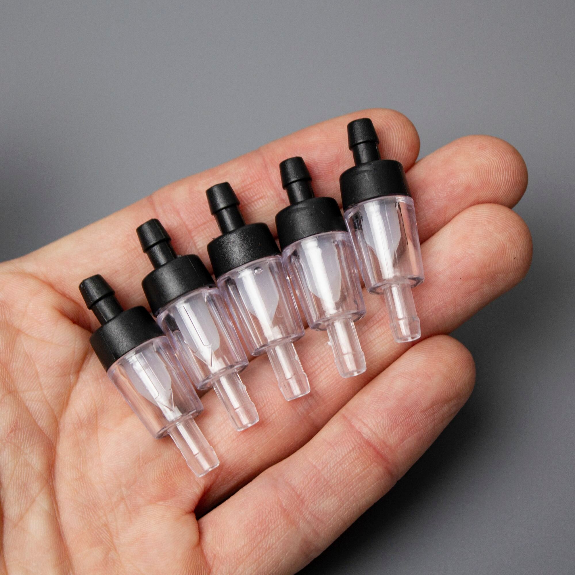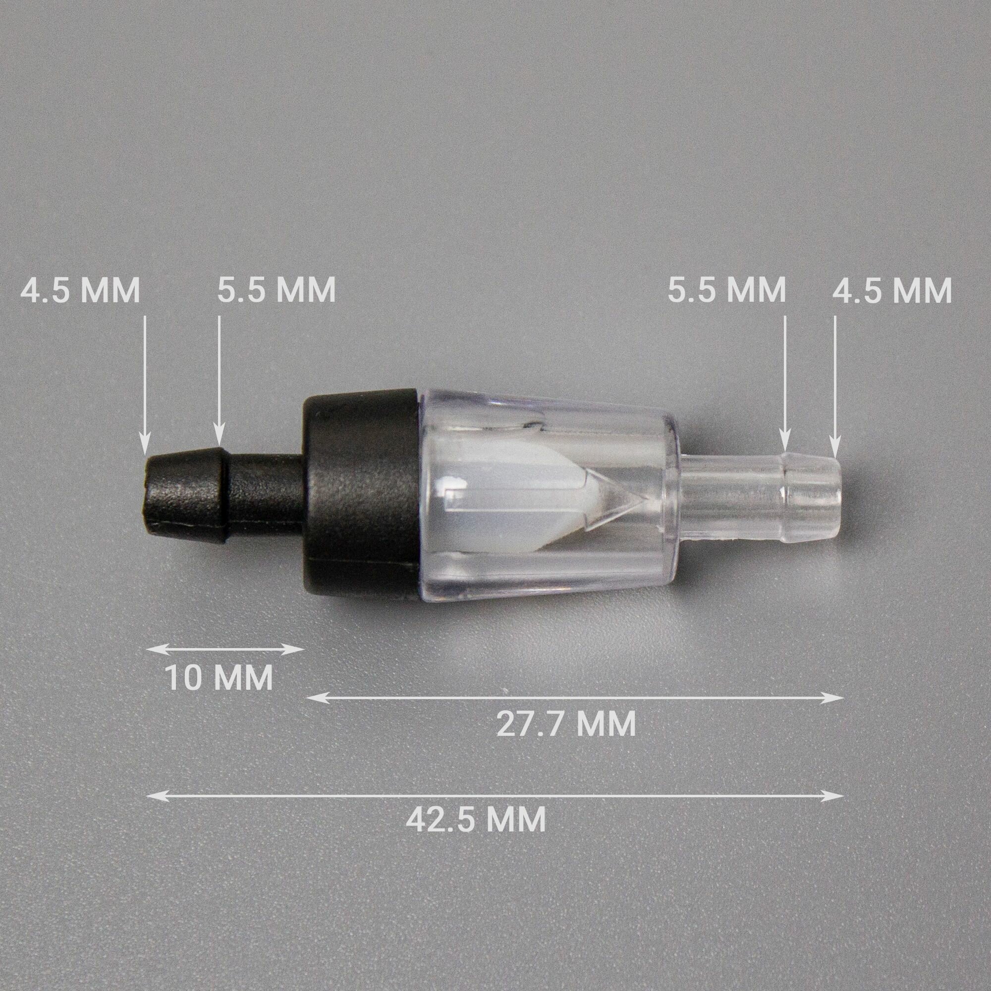Обратные клапаны 5 штук, штуцер 4 мм. Для аквариума и компрессора, шланг диаметром 4/6 мм. (для воздуха и воды, прозрачный с черным) информация: