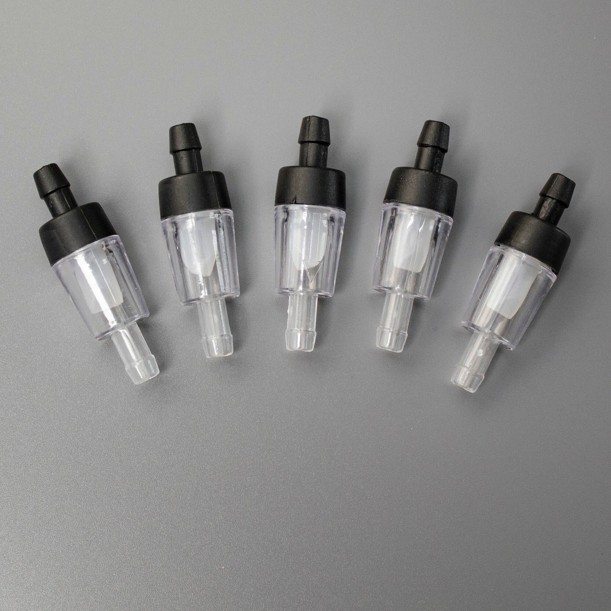 10 цен на Обратные клапаны 5 штук, штуцер 4 мм. Для аквариума и компрессора, шланг диаметром 4/6 мм. (для воздуха и воды, прозрачный с черным)