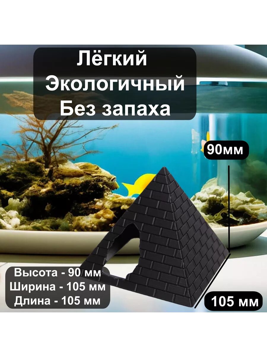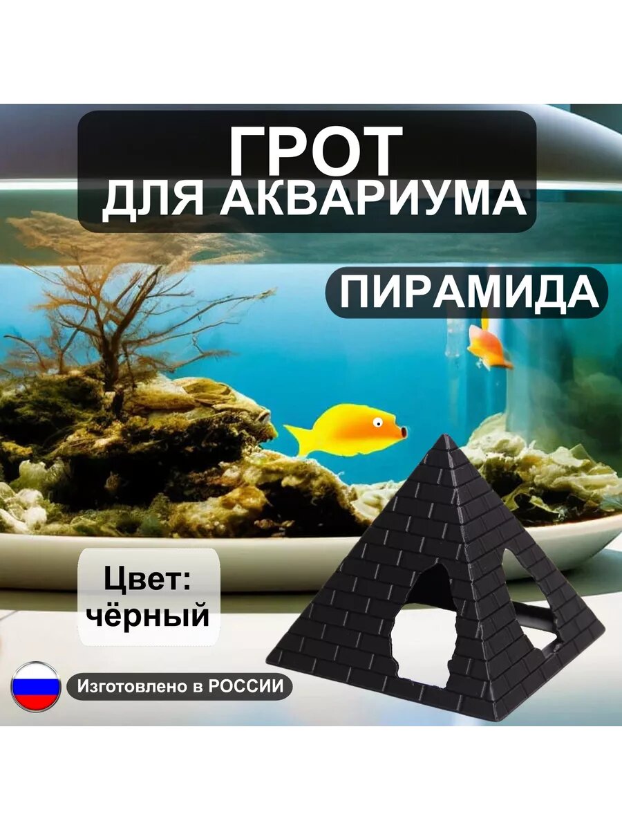 10 цен на Грот "Пирамида" для рыбок и креветок в аквариум от бренда "Рыбкин Дом", цвет: черный