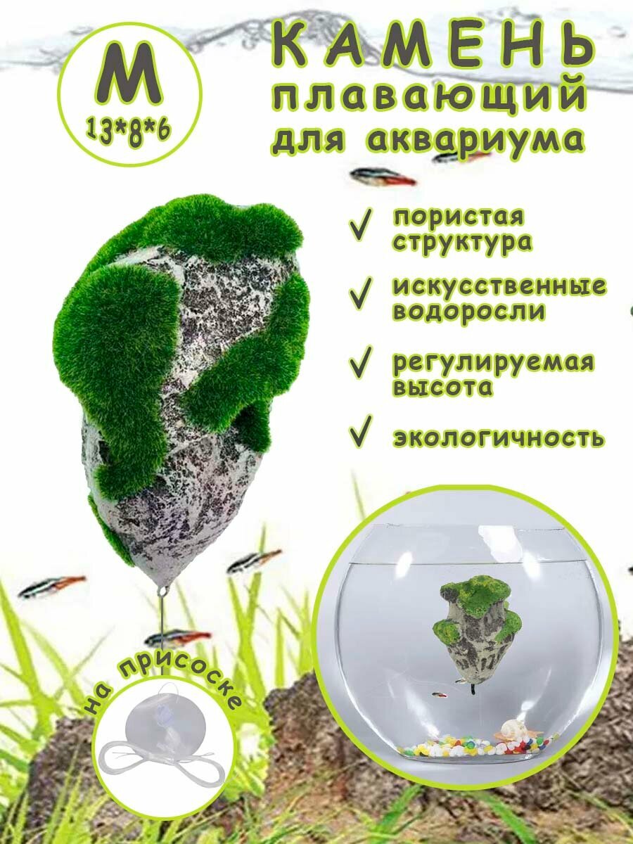10 цен на Камень для аквариума "Плавающий камень с имитацией растительности"; 8*6*5 см