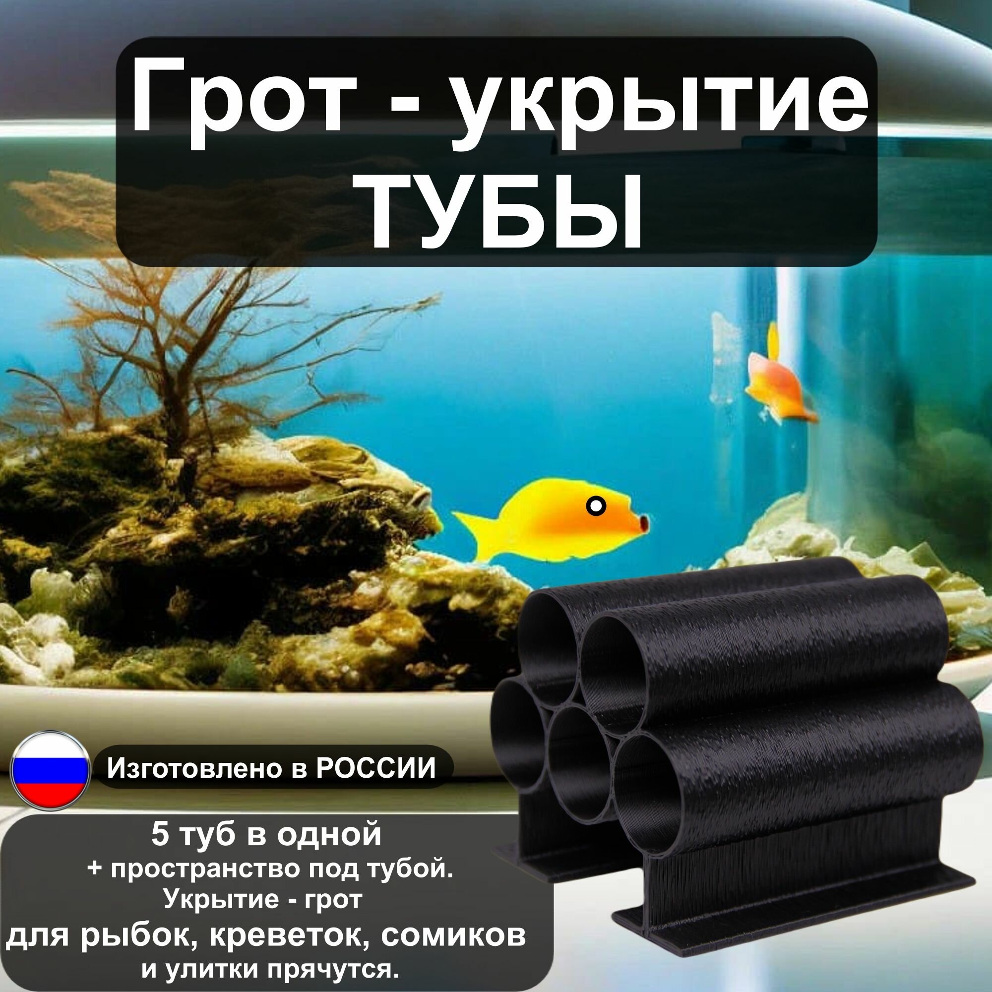 10 цен на Грот “Тубы” для маленьких рыбок и креветок в аквариум от бренда "Рыбкин Дом", цвет: чёрный