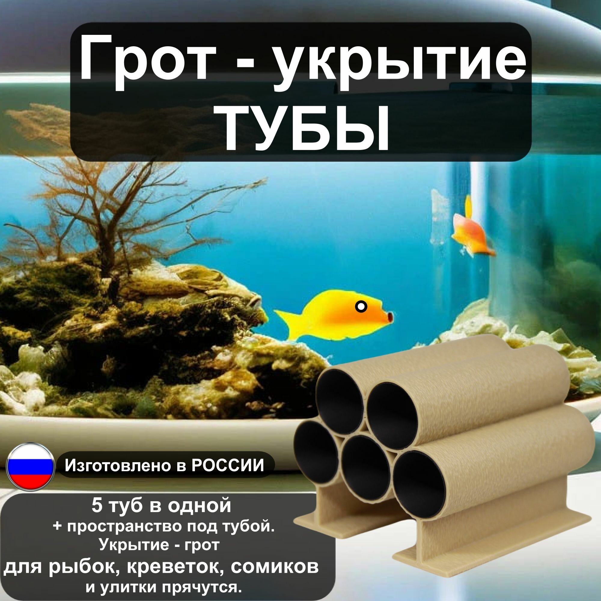 10 цен на Грот “Тубы” для маленьких рыбок и креветок в аквариум от бренда "Рыбкин Дом", цвет: бежевый