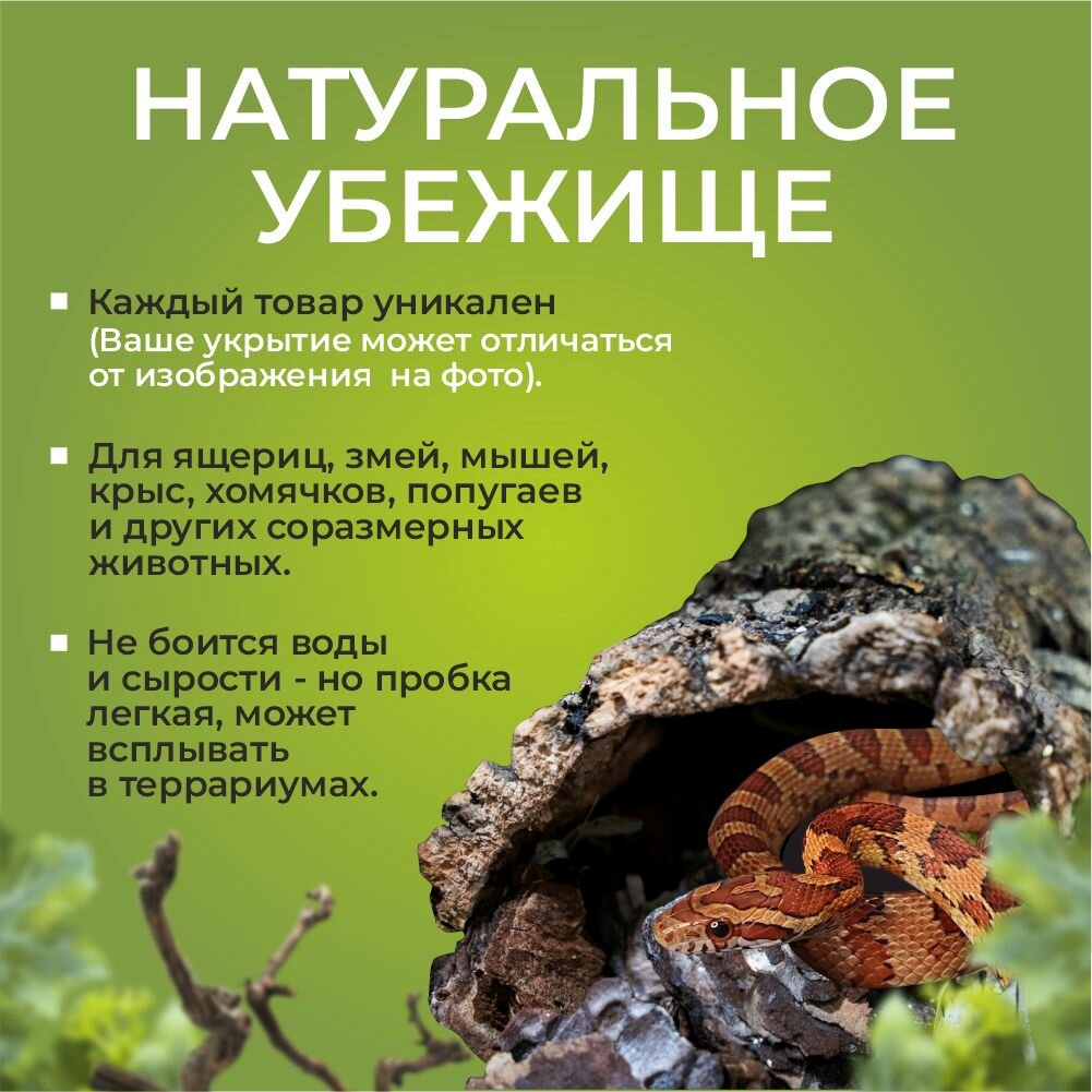 Пробковое укрытие для рептилий, размер М, украшение декорация для террариума, убежище для ящериц, змей, натуральное пробковое дерево. 1 438 ₽