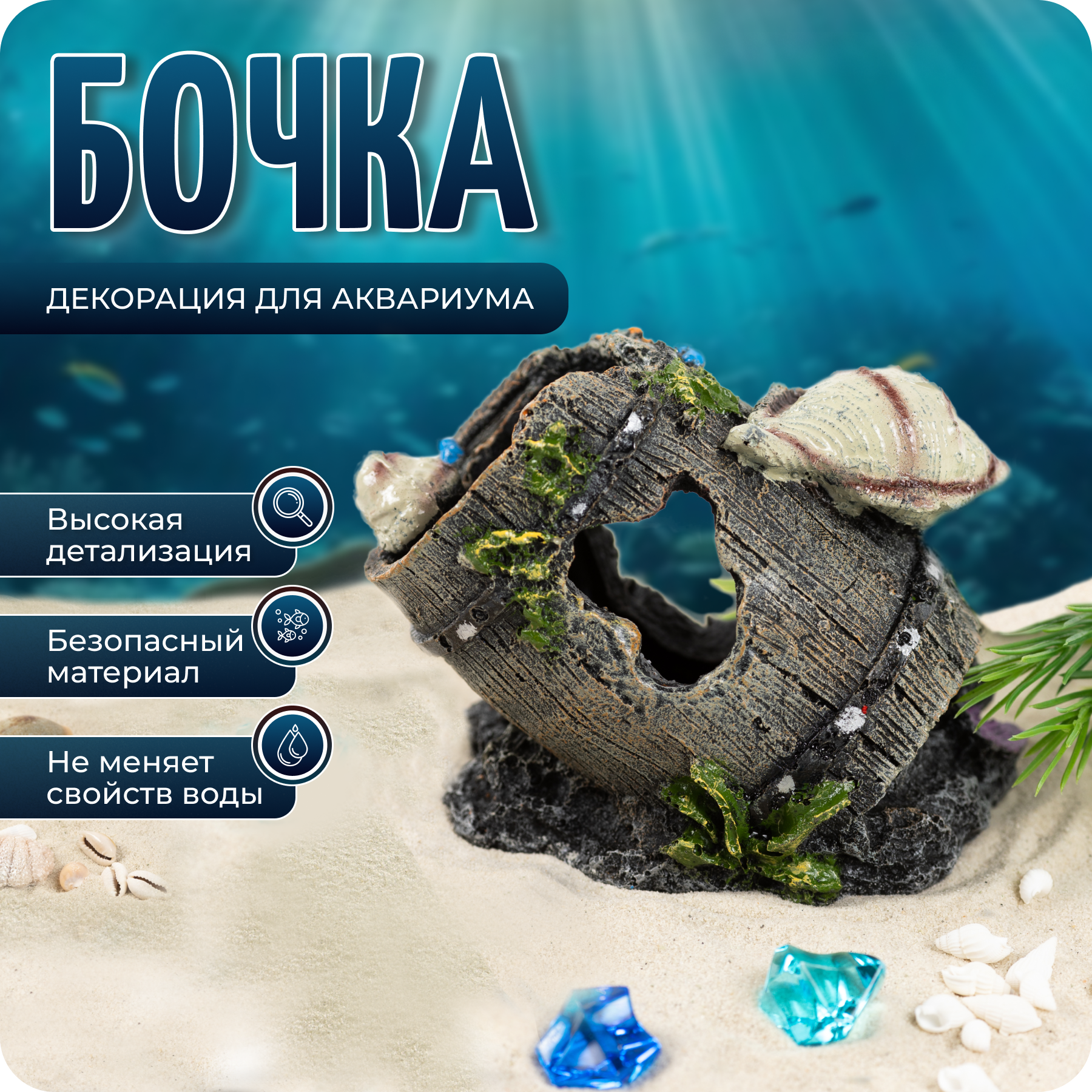 Отзывы на Декорации для аквариума "Бочка с ракушкой", грот для рыб, COLOR Si