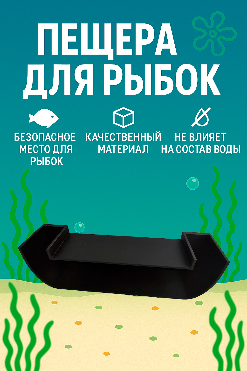 Аквариумная пещера, черного цвета, для рыбок и других водных обитателей, ландшафтная информация: