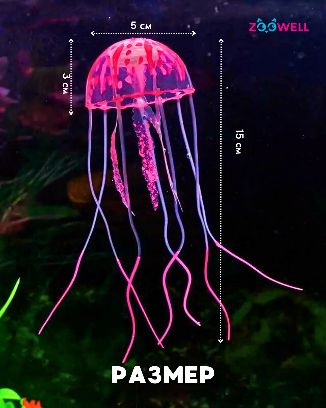 Отзывы на Декор для аквариума флуоресцентный ZooWell Neon Light (Медуза светящаяся), цвет розовый