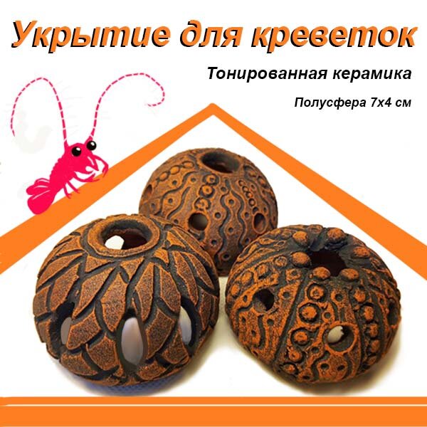 10 цен на "Полусфера" 7 см. Укрытие для креветок, Тонированная керамика,