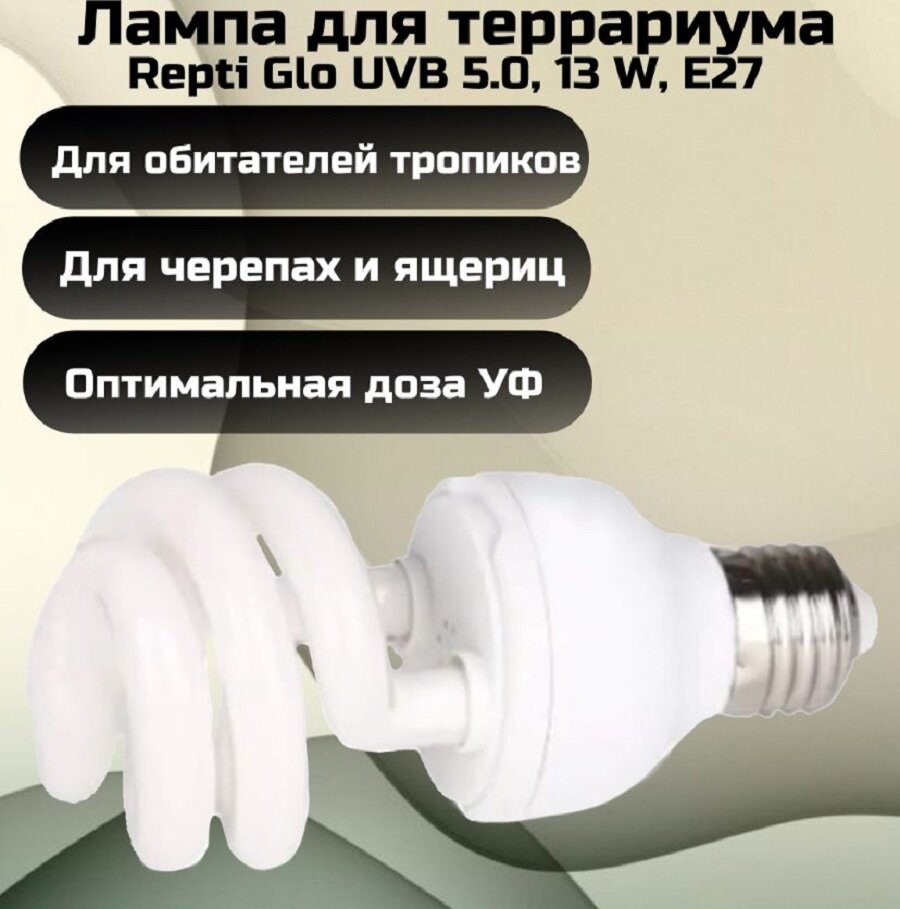 Лампа для террариума Repti Glo UVB 5.0, 13 W, Е27 информация: