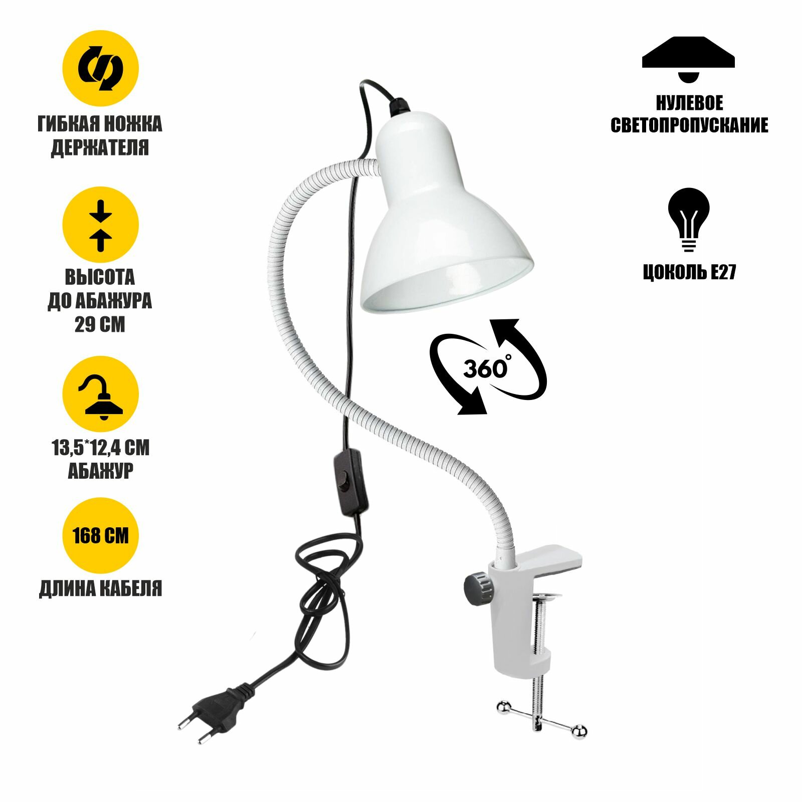 Светильник для террариума на прищепке/ для рептилий/ с ультрафиолетовой лампой