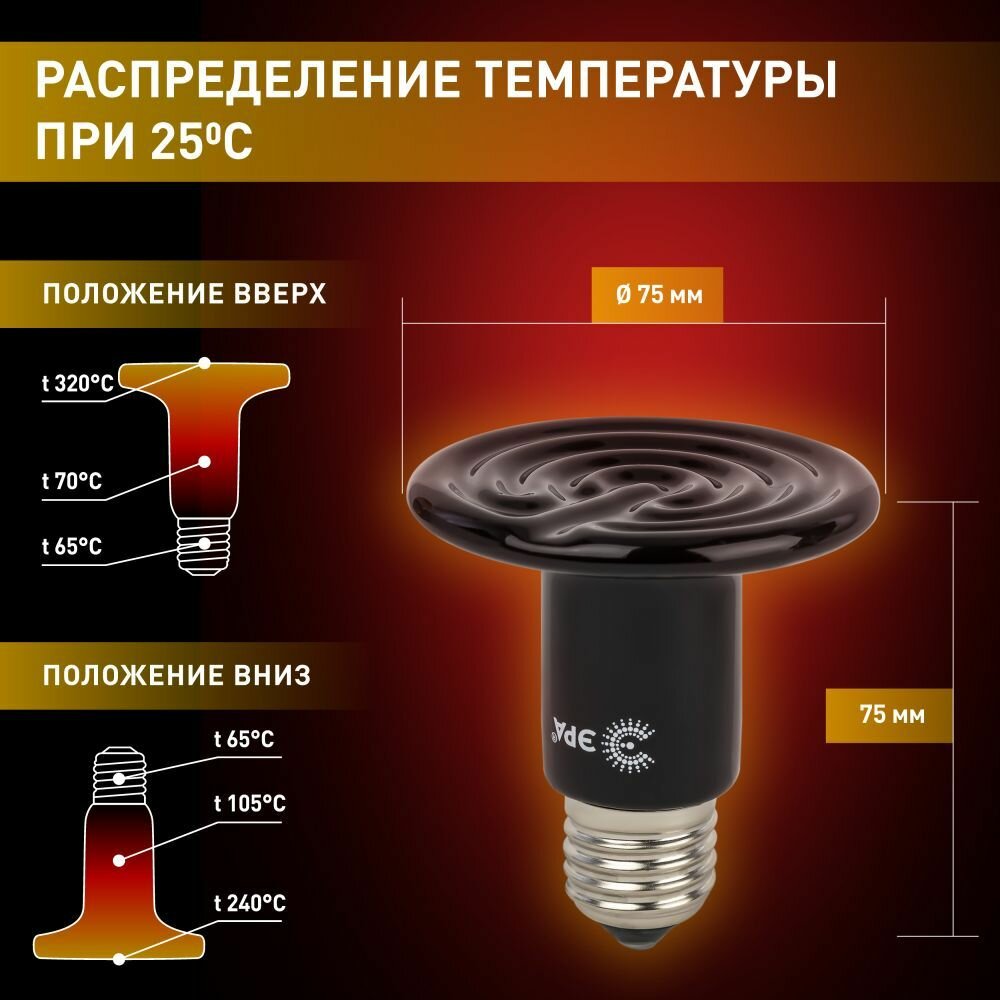 Инфракрасная лампа ЭРА FITO-50W-НQ 50 Вт Е27 для брудера, рептилий 50Вт информация: