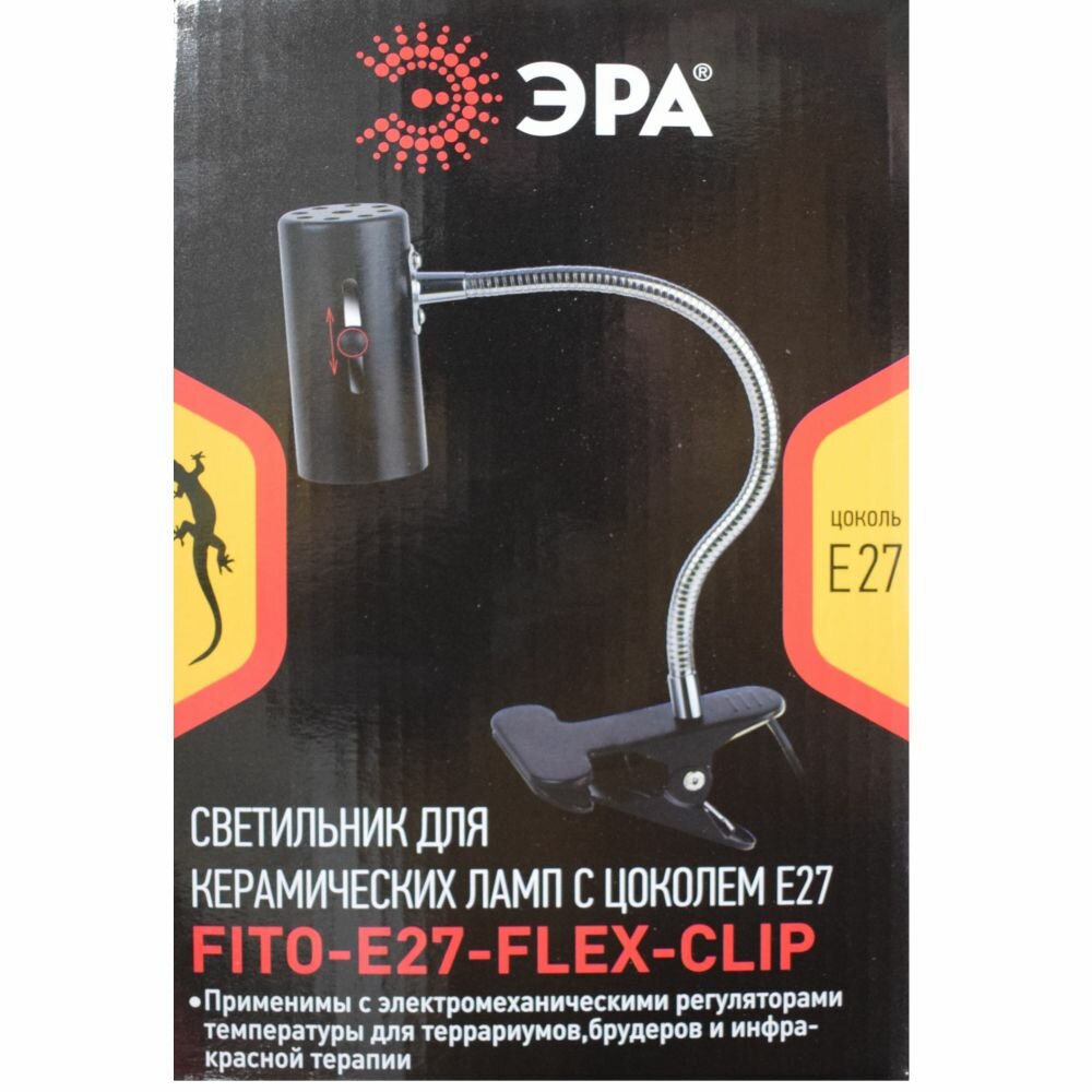 Светильник для инфракрасной лампы на прищепке для террариума курятника брудера с цоколем E27 ЭРА FITO-E27-FLEX-CLIP информация: