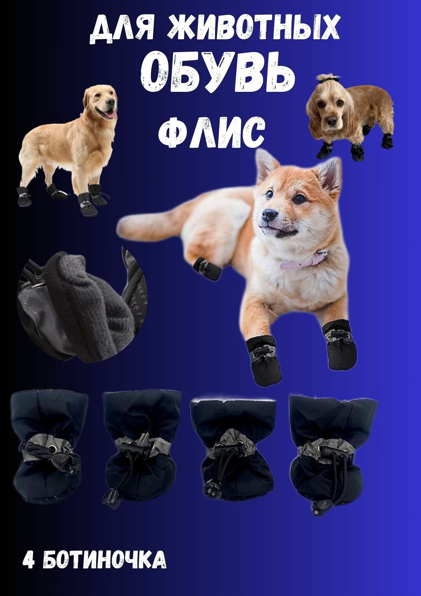Непромокаемая зимняя обувь для собак с мехом р4 1 399 ₽