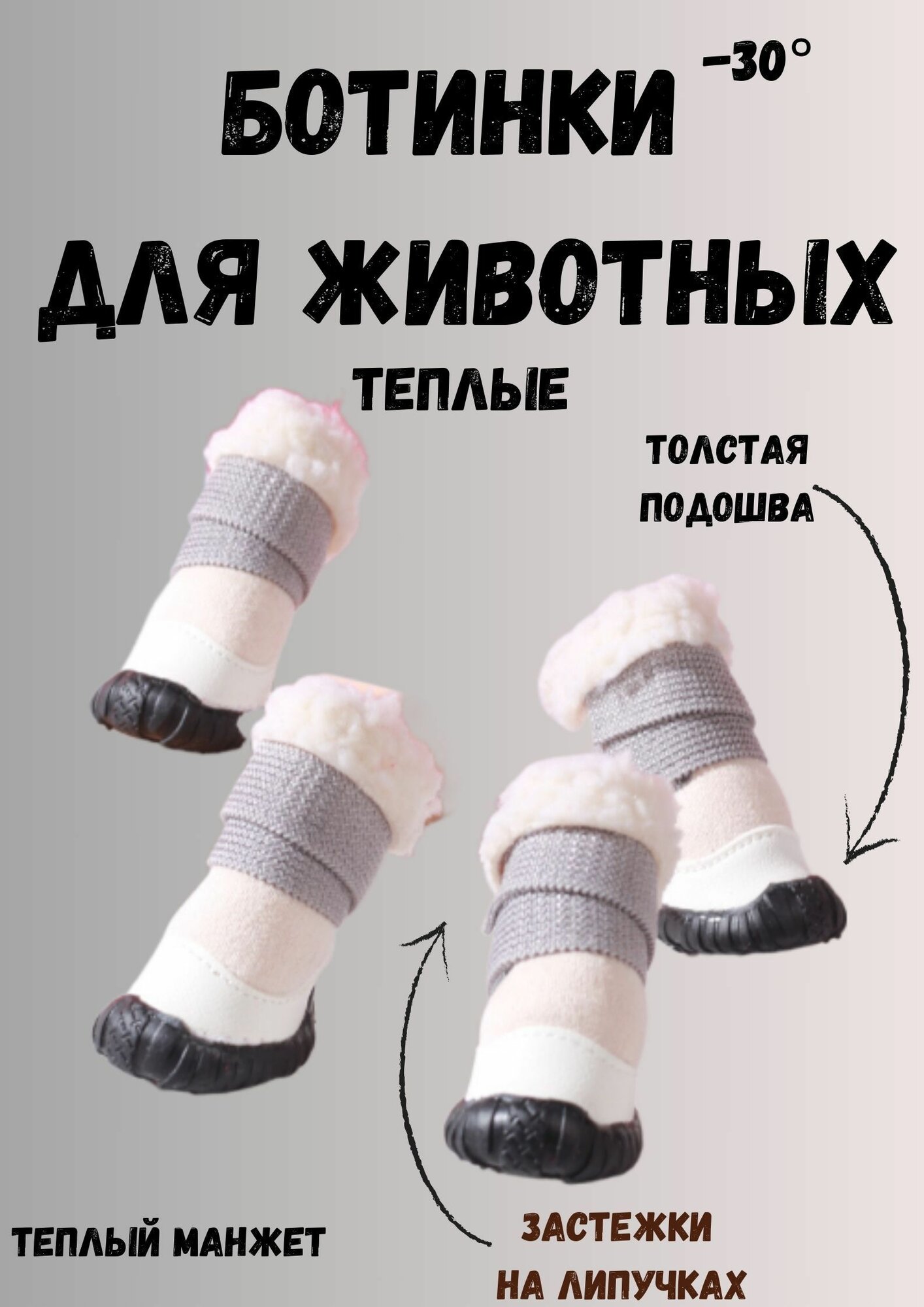 Зимние ботинки для собак с мехом на толстой подошве 4-L информация: