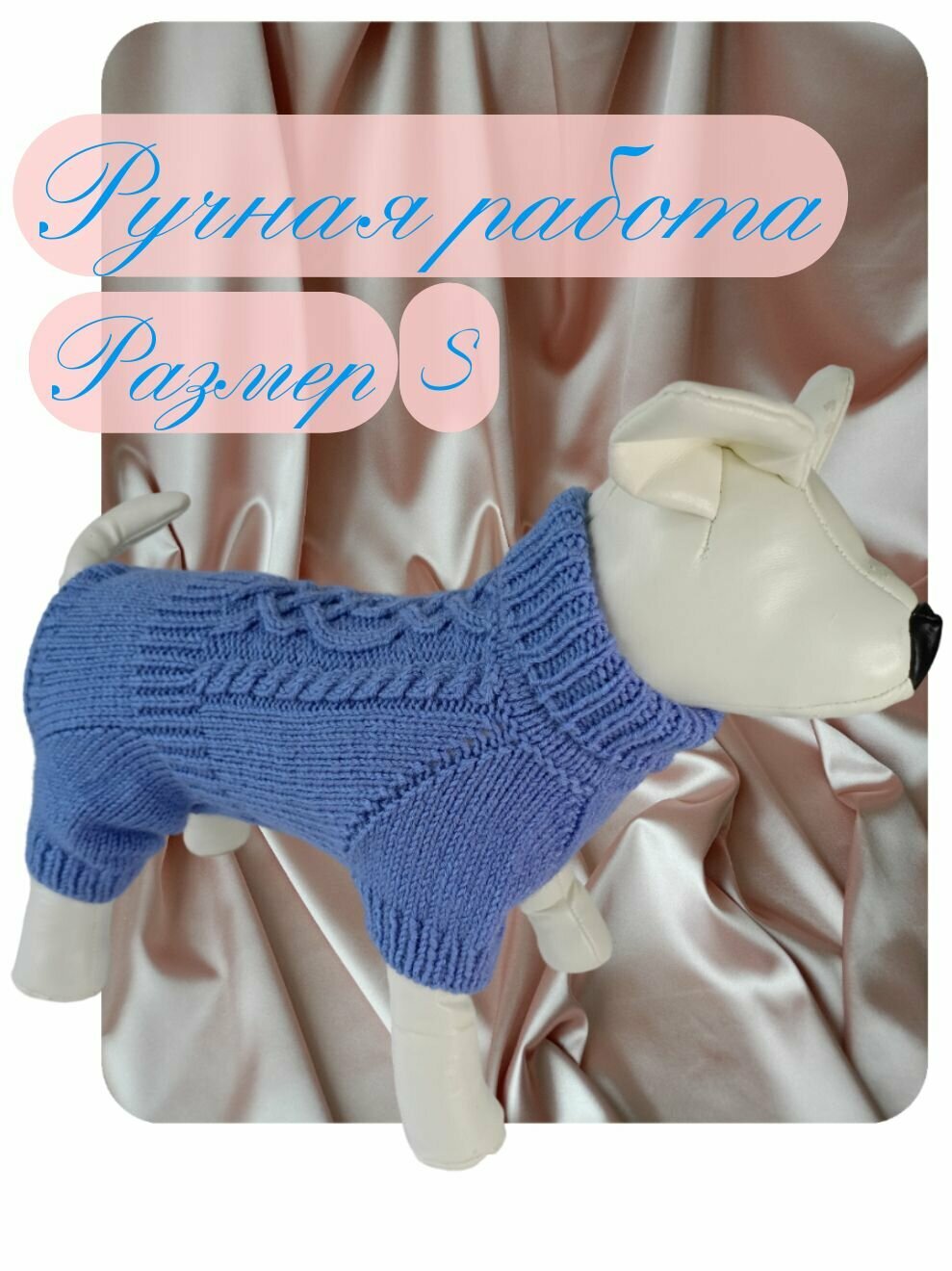 Комбинезон (свитер) вязаный, голубой, размер S, ручной работы, одежда для собак мелких пород информация: