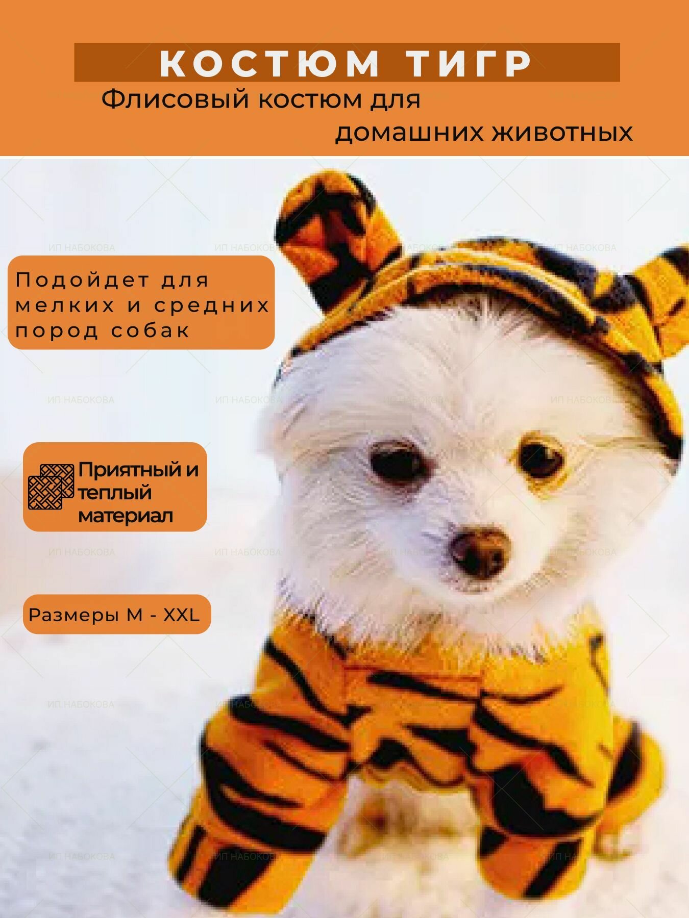 10 цен на Костюм для питомцев "Тигр", флис, демисезонный, цвет оранжевый, размер М