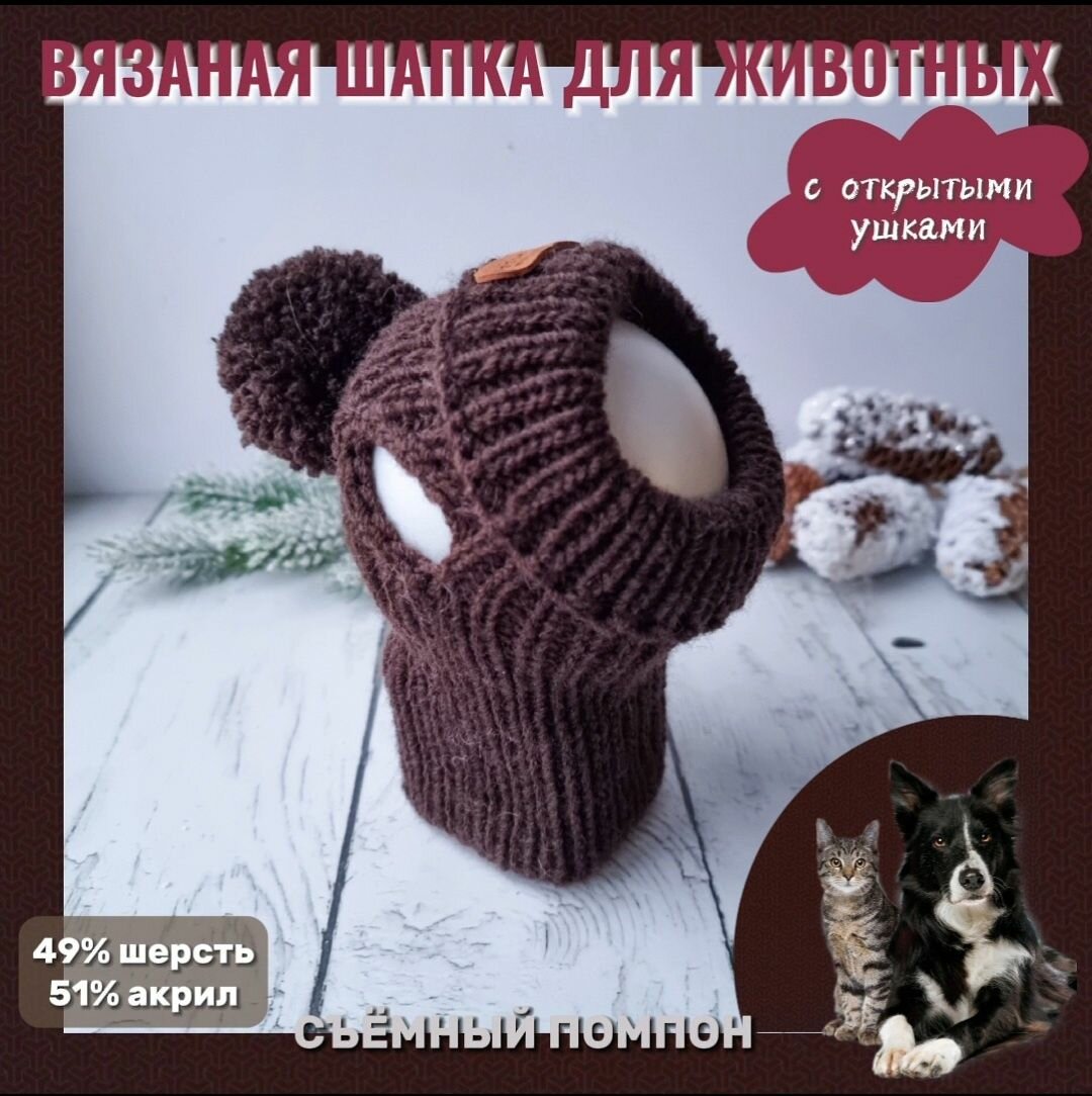 Вязаная шапка для животных с открытыми ушками, коричневый, S информация: